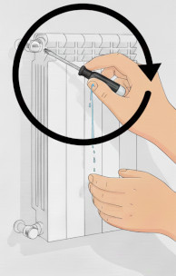 Apri la valvola girandola in senso antiorario (verso sinistra). Basta mezzo giro o un giro, non svitare completamente! In alcuni modelli di termosifone è necessario un cacciavite piatto da ruotare in senso antiorario. Sentirai un sibilo. È l’aria che esce.