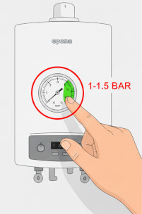 FONDAMENTALE: Dopo aver sfiatato tutti i termosifoni della casa, vai alla caldaia e guarda il manometro (l’orologio con l’ago). La pressione deve essere tra 1 e 1,5 bar.